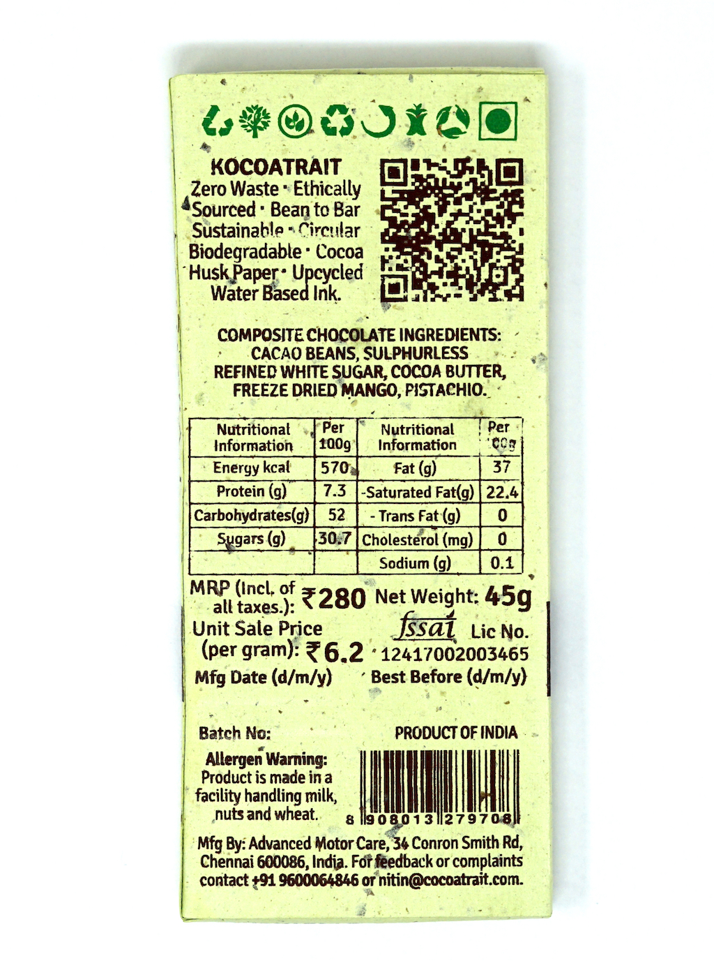 About Kocoatrait: Kocoatrait is a Sustainable and Responsible Indian bean to Bar chocolate brand conceived by Poonam Chordia and has been incubated by L Nitin Chordia, India’s 1st certified chocolate taster. As a brand, we believe in: